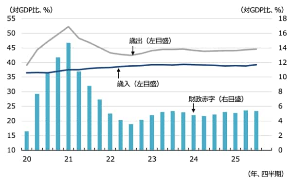 キア・スターマー首相が率いる英国の労働党政権は11月26日、秋の予算案を発表したが、英国の財政をさらに悪化させる可能性が懸念されていた。英国では財政再建が遅れており、財政赤字は名目GDP(国内総生産)の5%前後で高止まりしている。特に、歳出の拡大に歯止めがかかっていないことが問題である。