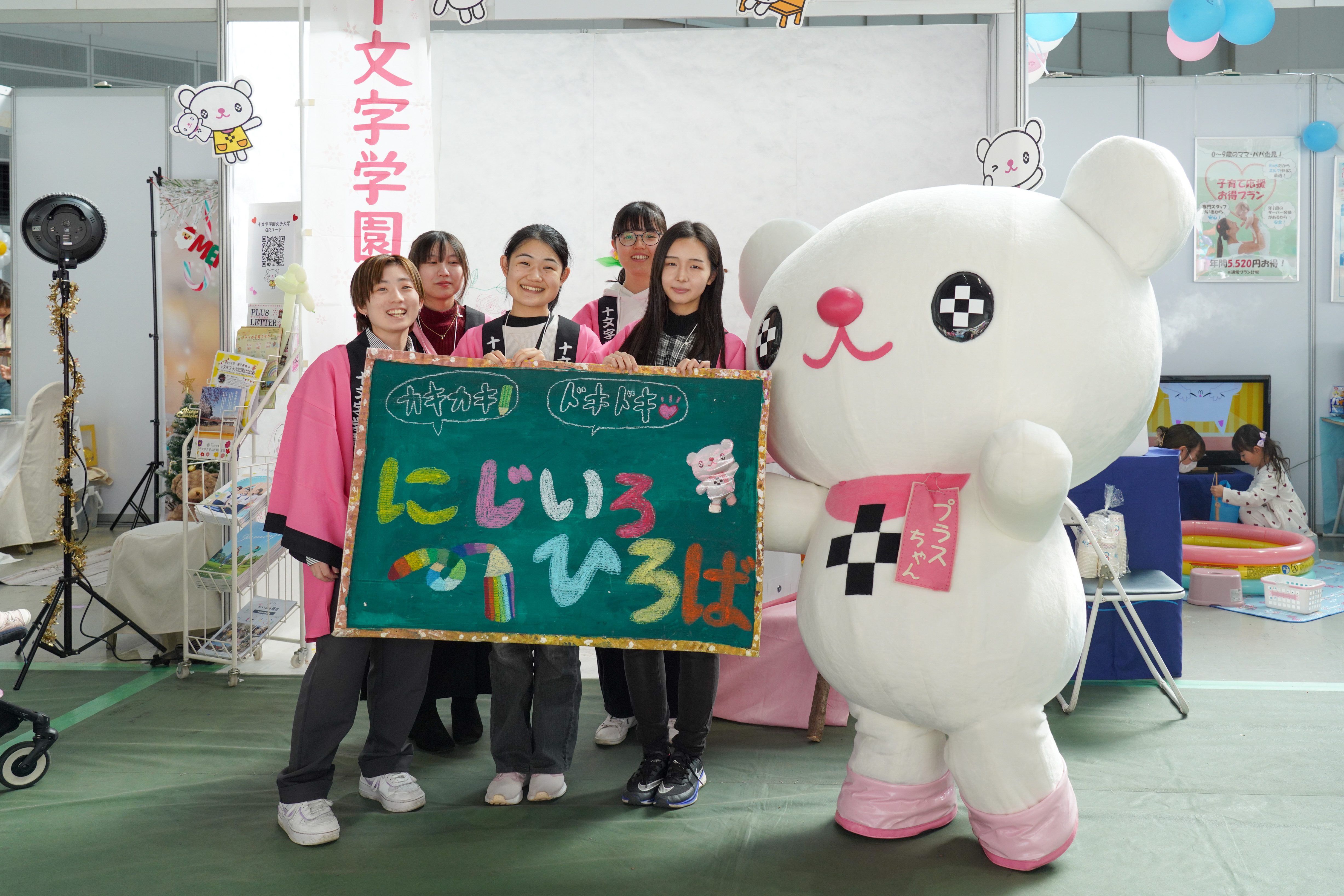 日頃から様々な地域イベントに参加している「プラスちゃんくらぶ」の学生たちです。活動を通して身につけたキャラクターイベントの心得や積極性を、いかんなく発揮することができました。
