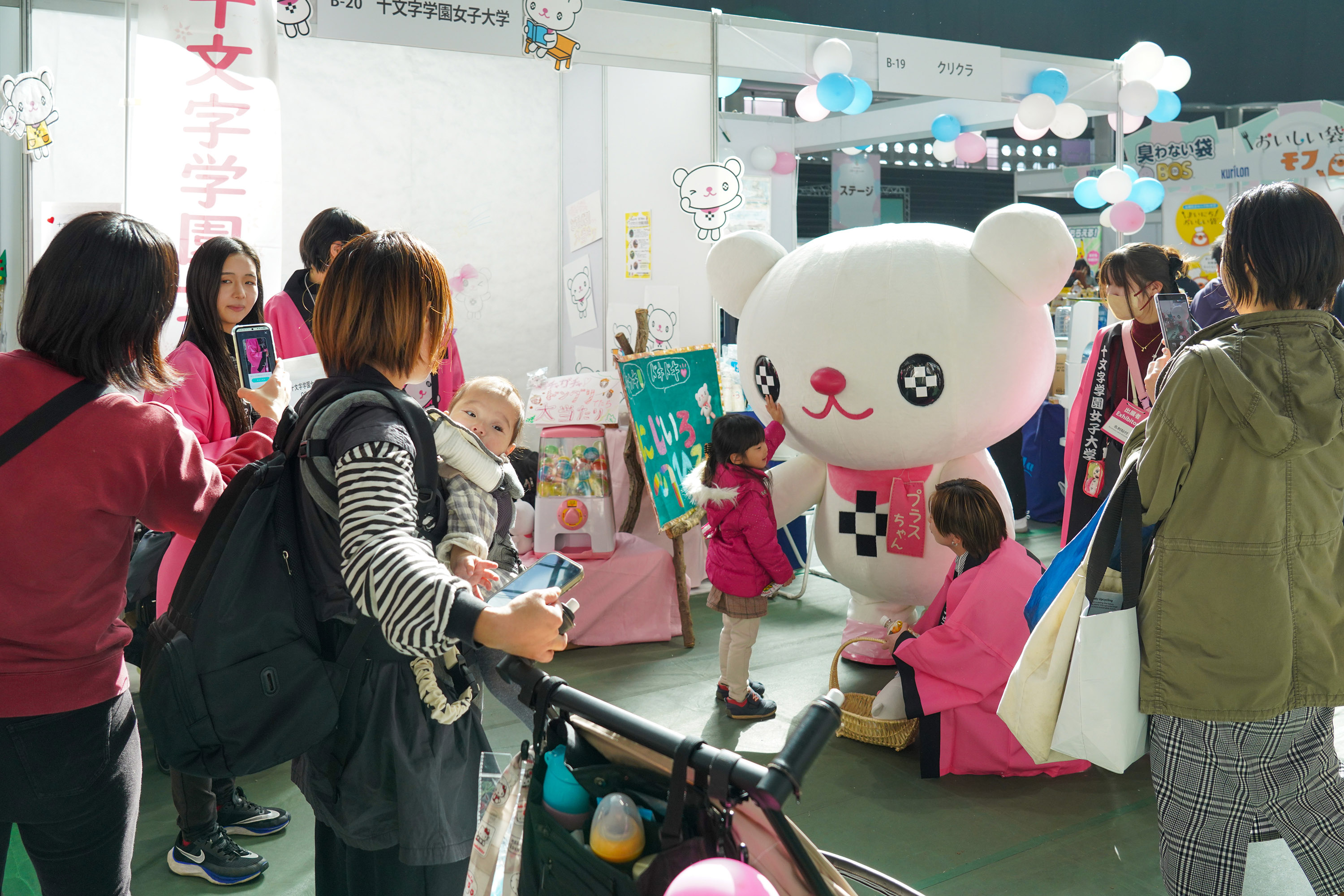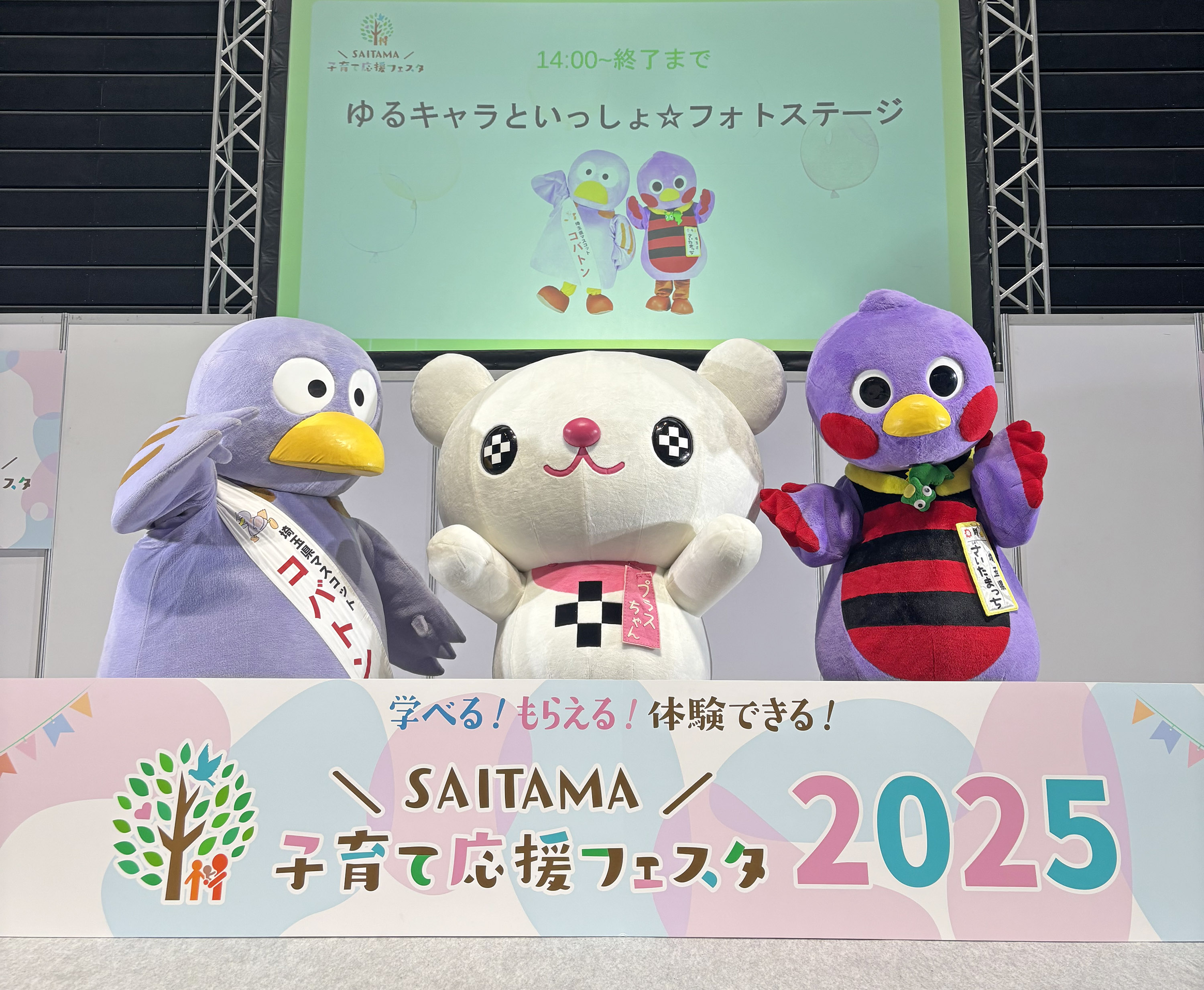 また、昨年度に引き続き、「プラスちゃんくらぶ」の学生たちが、埼玉県マスコットの「コバトン」「さいたまっち」のグリーティングをサポート。来場者とキャラクターとの記念撮影を手伝ったり、グリーティング待機列を整備したりしました。