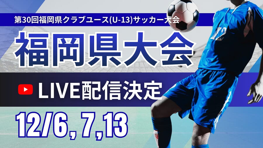 第30回福岡県クラブユース(U-13)サッカー大会のライブ配信についてお知らせします。