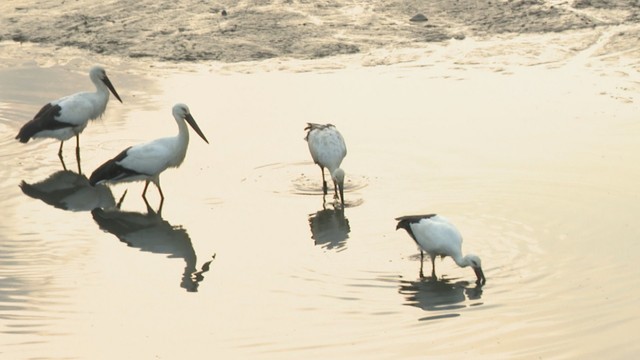 2日、香川県まんのう町のため池で、コウノトリがエサを食べたり休憩したりする様子が確認されました。