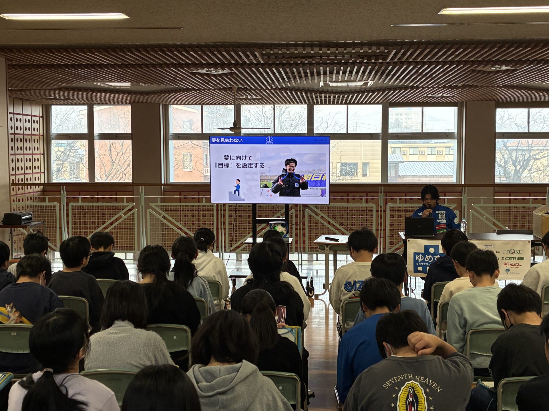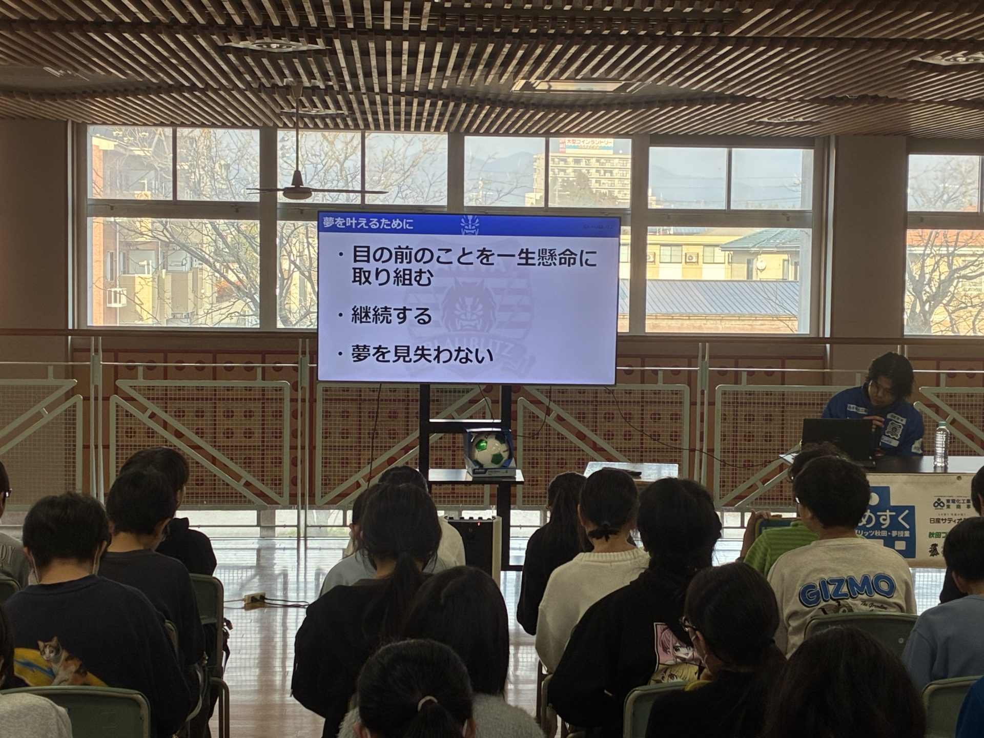 ブラウブリッツ秋田が、ホームタウン活動の一環として実施している「ゆめすく」は、ブラウブリッツ秋田の選手などが学校を訪問し、プロサッカー選手という夢を叶えた経緯を踏まえ「夢を持つことの大切さ」「夢を追いかけることの重要性」を伝える活動です。