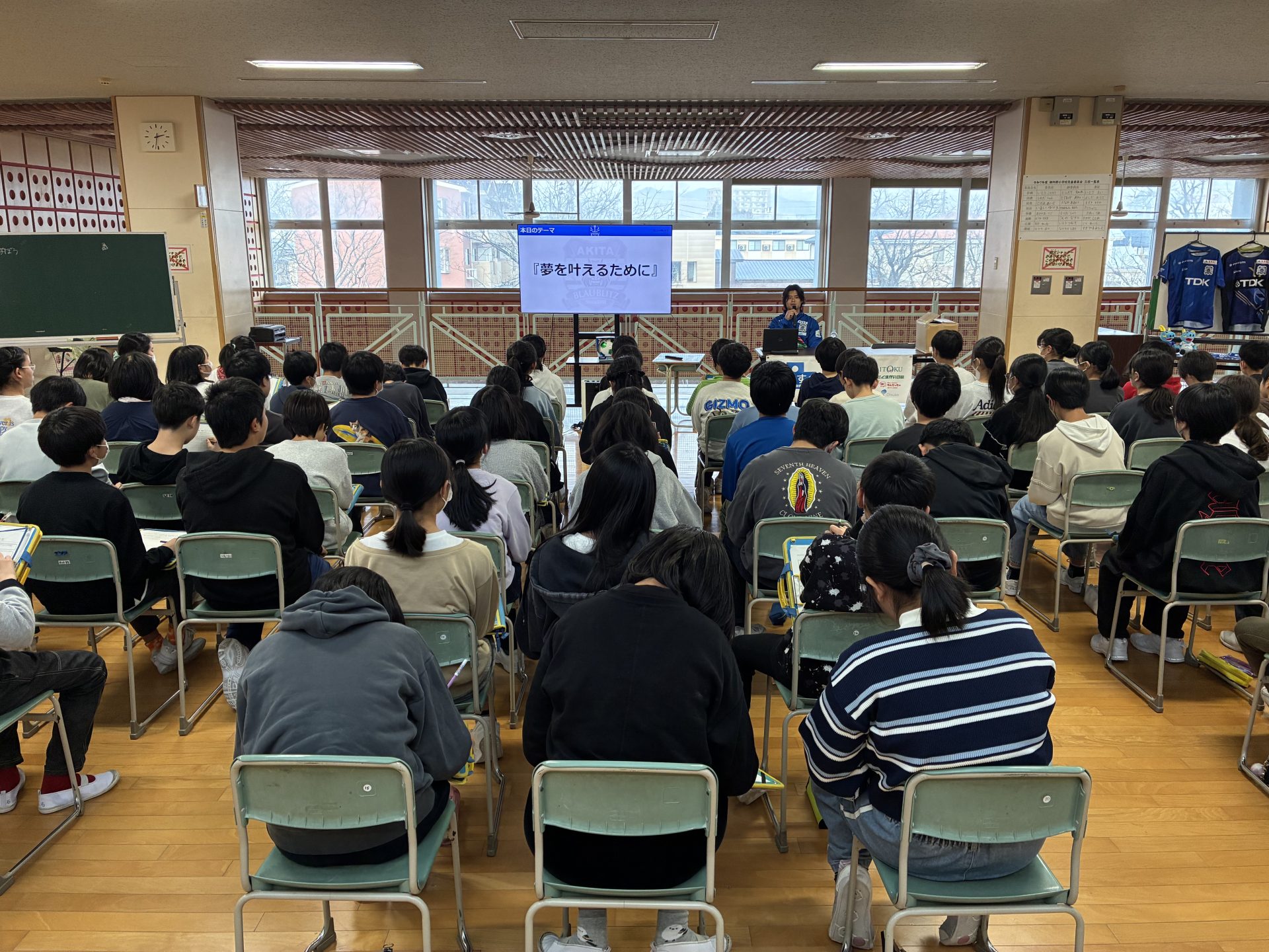 11月27日(木)、秋田市立御所野小学校の6年生87名を対象に、DF71 畑橋拓輝選手が「ゆめすく」を行いました。