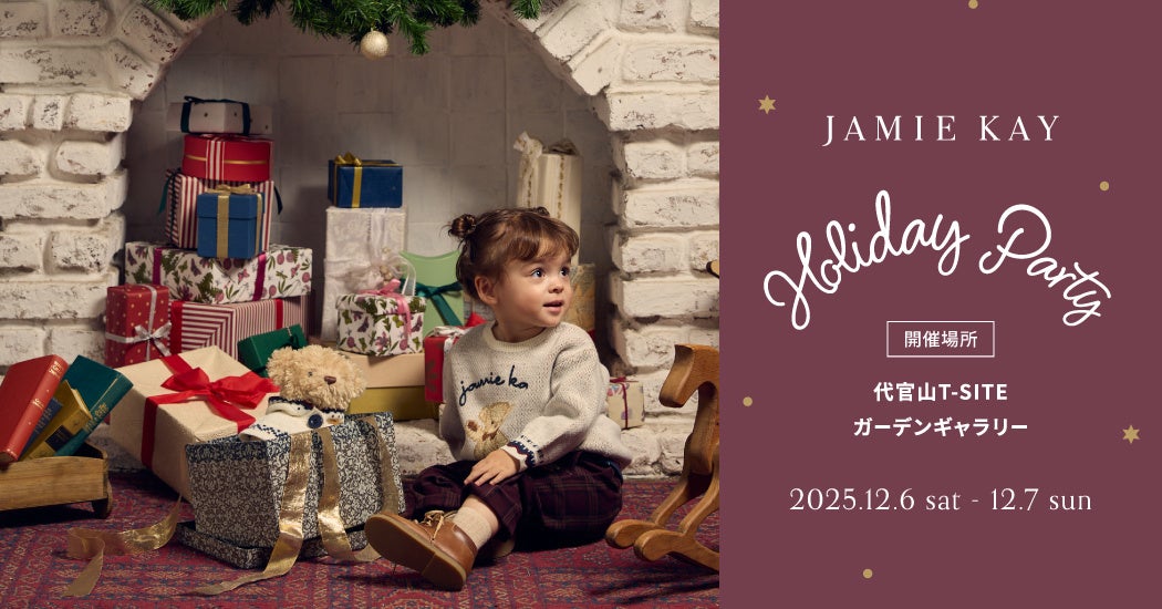 株式会社マッシュスタイルラボ(本社:東京都千代田区/代表取締役社長:近藤広幸)が展開する、ニュージーランドの高品質なオーガニック素材を使用し、世界中にファンを抱える子ども服ブランドJAMIE KAY(ジェイミーケイ)は、2025年12月6日(土)・7日(日)の2日間、冬の家族時間を親子で一緒に楽しめる多彩な体験と、心あたたまる思い出作りを提供するホリデーイベント「JAMIE KAY Holiday Party」を、東京・代官山T-SITE GARDEN GALLERYにて開催します。