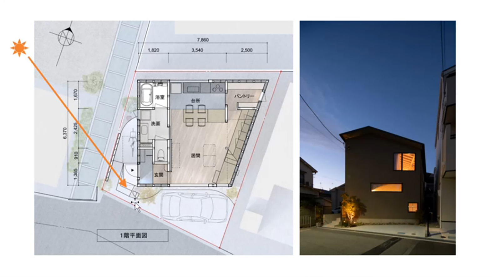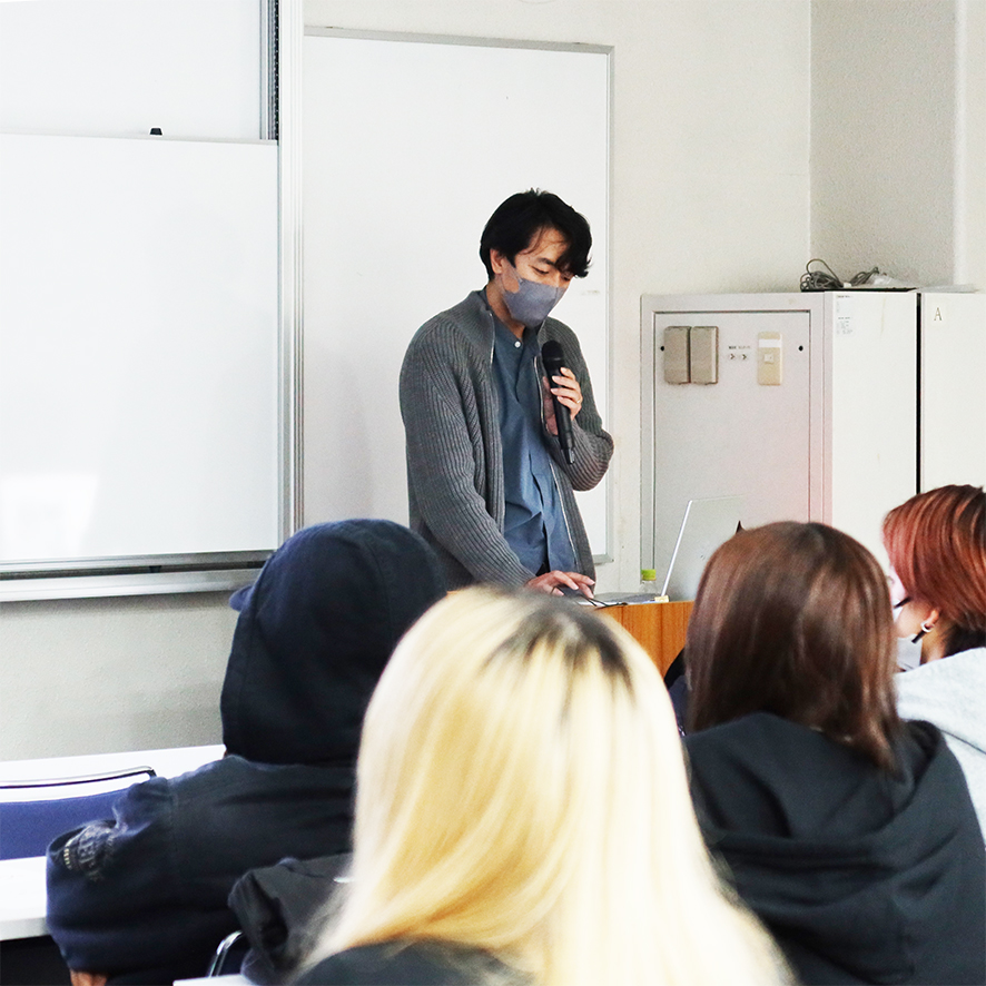 構図の基本を踏まえた中土居先生の写真 建築家・建築写真家として活動されている中土居宏紀先生をお招きし、建築写真の特別講座を開催しました。 写真は単なる記録ではなく、構図の基本を踏まえ、光と影や点景によって奥行きを表現することにより、その建築空間の魅力を表現できる芸術作品であることなどを学びました。 中土居先生の話を熱心に聞く学生達 中土居先生が設計した住宅と撮影時の光の考え方 © 2019 Tezukayama University Nara 奈良 奈良県 居住空間デザイン学科 帝塚山大学 現代生活学部