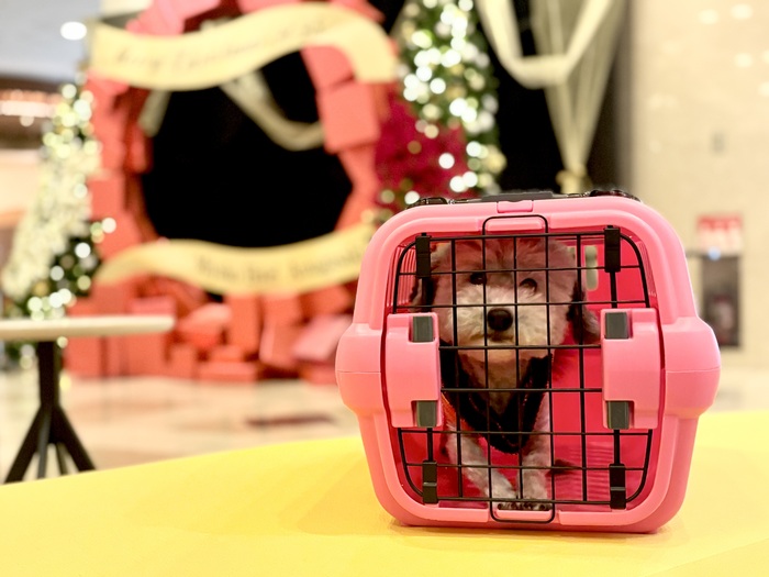 チェックインは、当日の14:00からスタート。ワンチャンはペットキャリーにて同伴可能です。クリスマスムード漂う華やかなツリーや、フォトスポットも登場。季節を感じる飾りつけに心が躍ります。