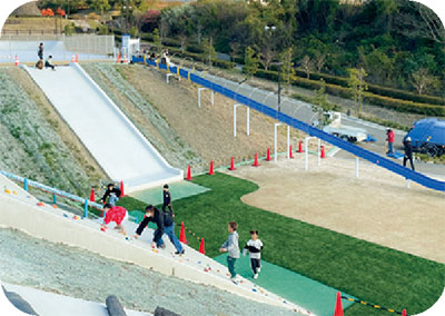 ローラースライダーや大型すべり台、ロープ登りなどが楽しめます。