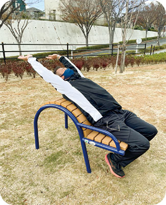 大人向けにつくられた、簡単なストレッチができる健康遊具が並んでいます。芝生広場は低い丘のような傾斜があり、ウォーキングに適しています。