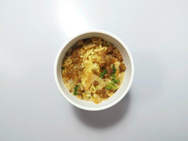 ローソン限定のカップ麺で、熱湯を入れて4分後に特製油を加えて、よくかき混ぜて完成です。