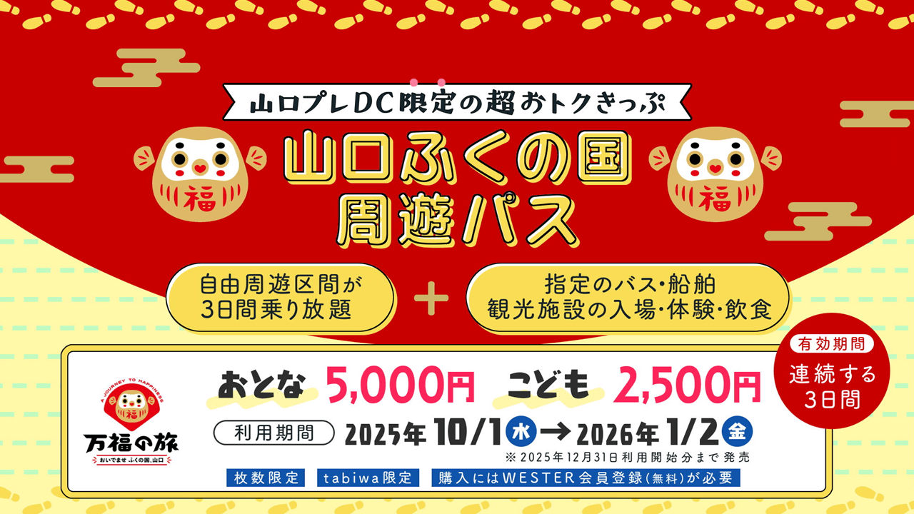 山口デスティネーションキャンペーン プレキャンペーン 山口ふくの国周遊パス 詳細情報