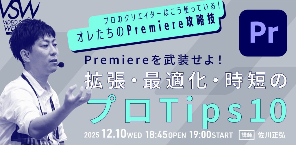 【12月10日(水)開催】VSW333「Premiereを武装せよ! 拡張・最適化・時短のプロTips 10」講師:佐川正弘