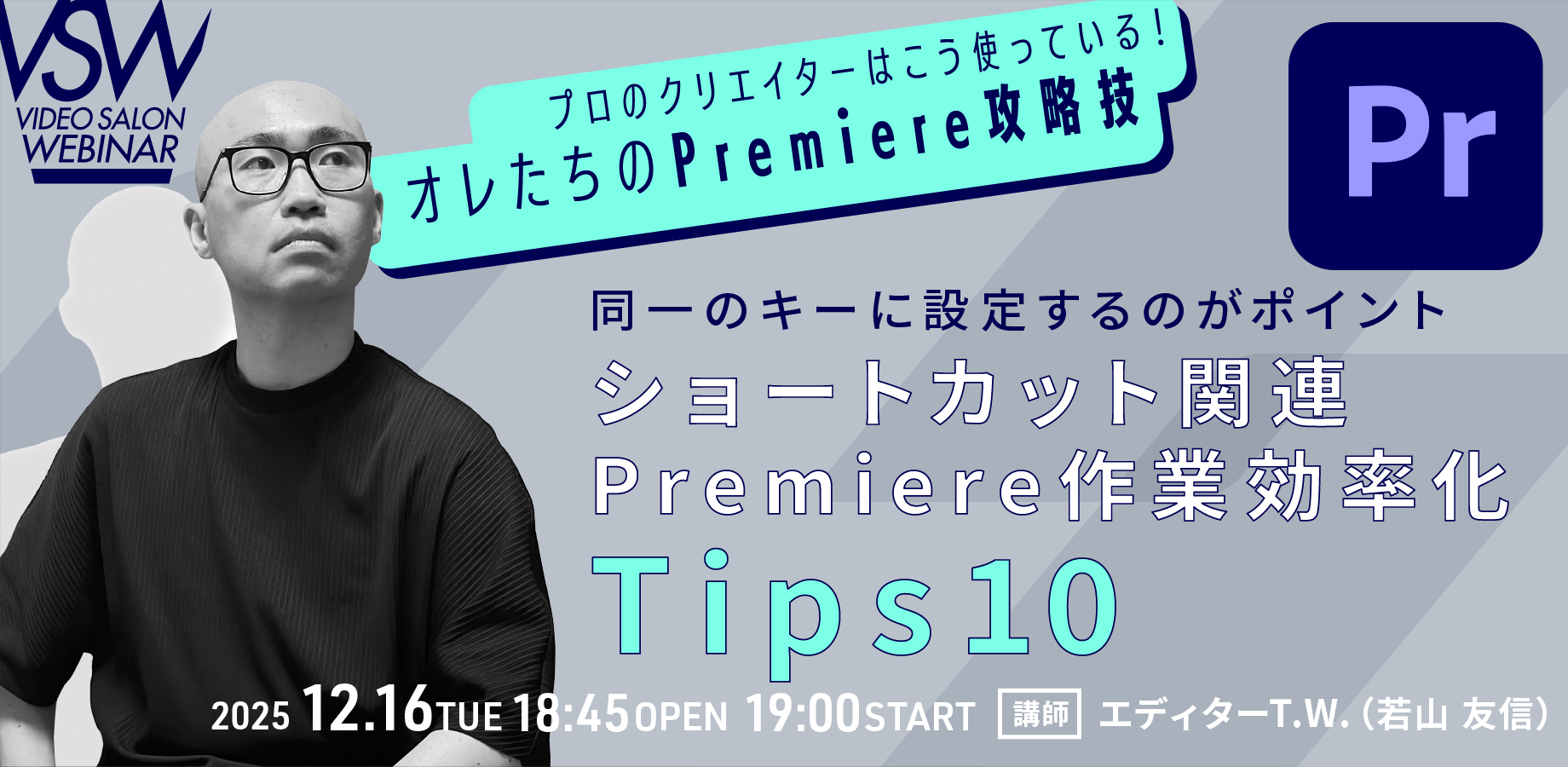 【12月16日(火)開催】VSW334「同一のキーに設定するのがポイント ショートカット関連のPremiere作業効率化Tips10」講師:エディターT.W.(若山友信)