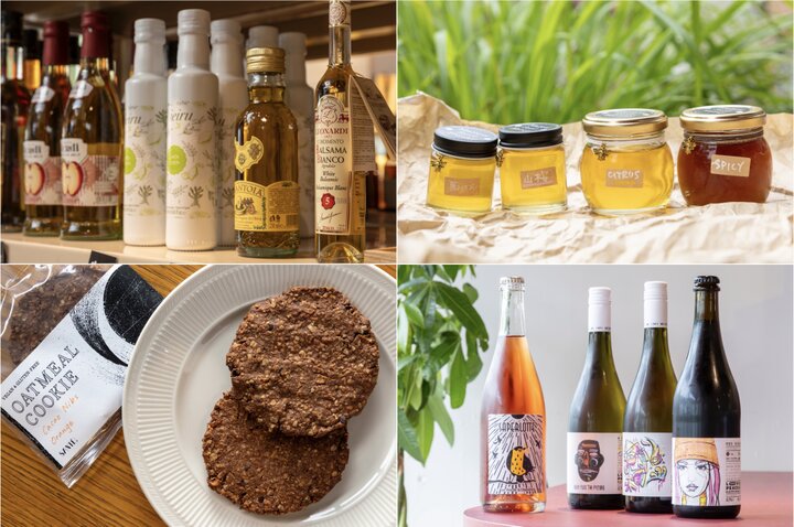 葉山近郊の作り手やショップともつながり、上質な商品も並んでいます。葉山にある「メローサーフ養蜂園」のはちみつは、採蜜した時期によって花蜜のブレンドが変わるので、味わいもいろいろ楽しめますよ。逗子のサイショク料理家「SANTÉ!」が作るヴィーガン対応のオートミールクッキーもおすすめ。1枚で食べ応えのある大きさで、「カカオニブオレンジ」は、八朔ピールの甘みやザクザクした食感がたまりません。