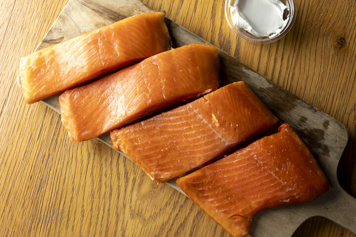 「スモークサーモン」も人気。桜チップを使って店内でスモークしています。生のようにやわらかな食感で、リピーターも多いとか。