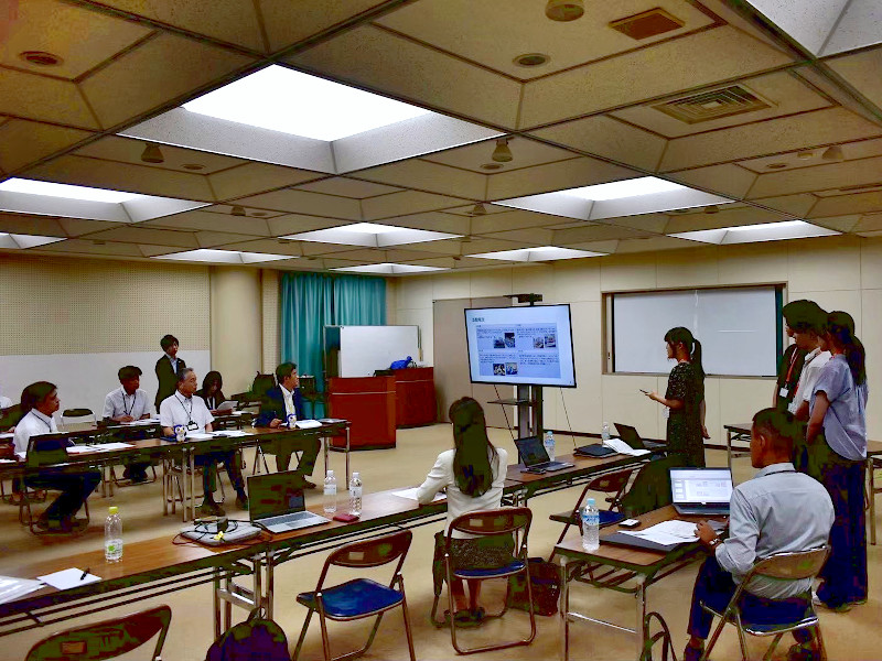 松浦市役所で、市と県の職員の方に中間報告を行っている様子