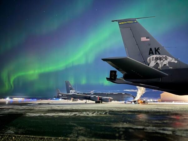 アラスカ州にあるアイエルソン空軍基地に並ぶ「KC-135」輸送・空中空輸機(11月12日、米空軍のサイトより)