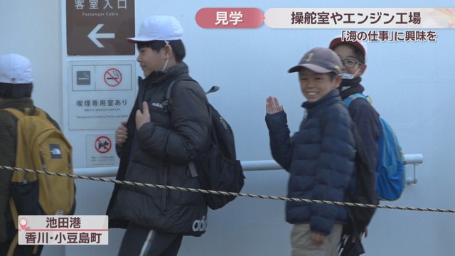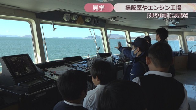 「海の仕事」に興味を持ってもらうのが狙いです。香川県小豆島の小学生が、フェリーの操舵室や船のエンジンを作る工場を見学しました。
