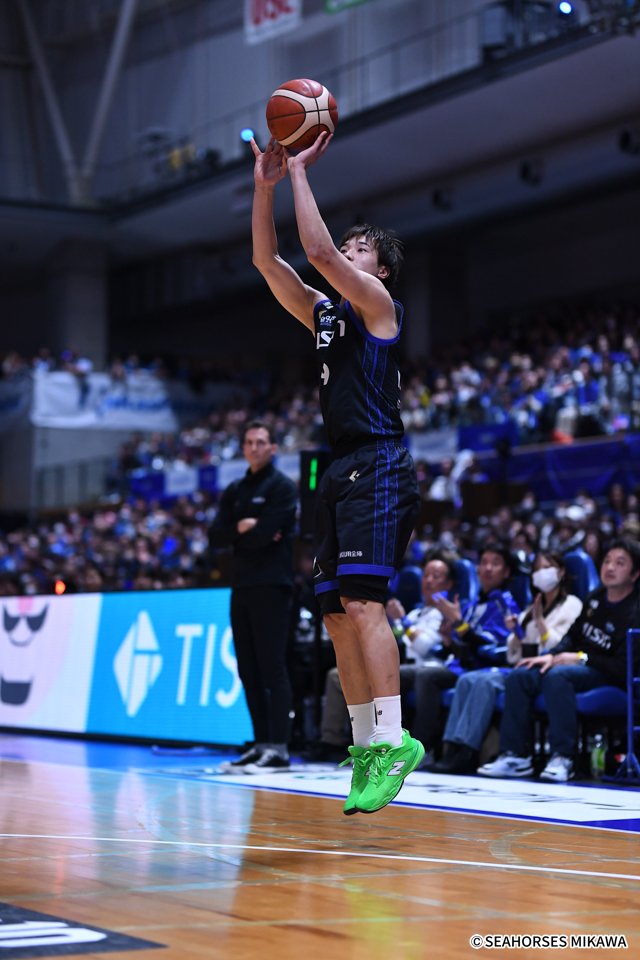 どちらに転ぶか分からない展開の中、三河のエース・優大がビッグプレーを見せる。昨シーズンまで三河に所属したザック・オーガストの連続得点で2点差に迫られた第3Qの開始4分半、素早い切り替えで一気にゴールへ加速し、陽成にファウルを受けて床に倒れ込みながらもレイアップを決め切った。エースのワンプレーで勢いづいた三河は、ガードナー 、須田、長野、レイマンと4連続3Pシュートで畳み掛け、最終スコア105-80で大勝した。