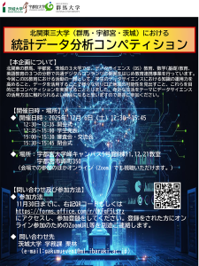 2026年12月6日に北関東3大学(群馬・宇都宮・茨城)統計データ分析コンペティションが宇都宮大学で開催され、本学から5名の学生が参加し、医学部医学科3年服部波留香さんが最もインパクトを与えた発表としてインプレッシブ賞を受賞されました。