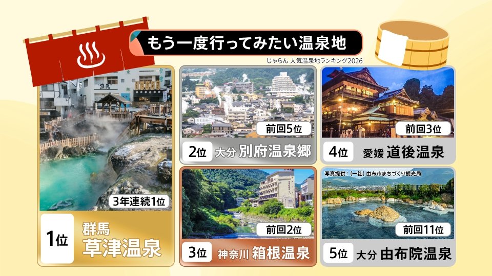 【もう一度行ってみたい温泉地】※じゃらん 人気温泉地ランキング2026