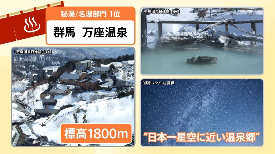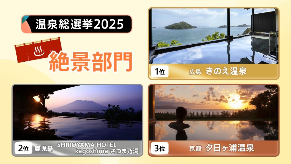 ▼5万人が投票「温泉総選挙2025」絶景部門TOP3