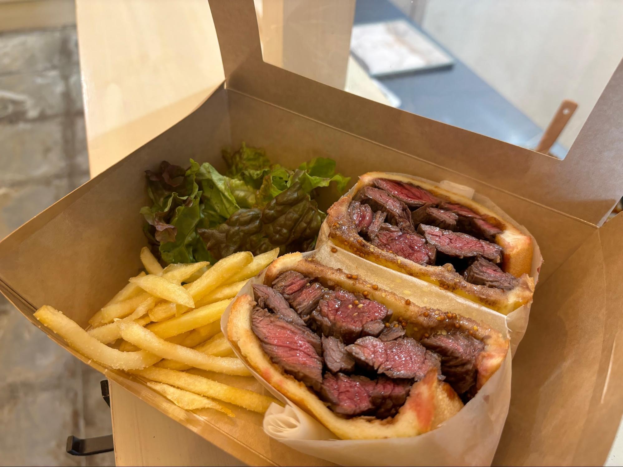 2025年11月22日にライオン通り商店街の一角にオープンした“映え断面ミートサンド”を楽しめるお店です。
