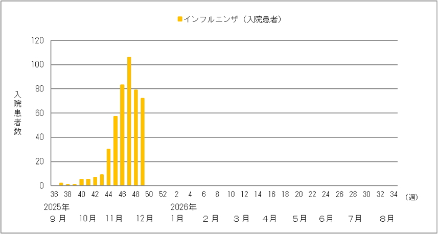 神奈川県の第49週(2025年12月1日~12月7日)のインフルエンザの定点当たり報告数は34.33であり、警報レベルを超えています。感染予防と感染拡大の防止のため、こまめに手を洗い、咳が出るときはマスクをするなどの咳エチケットを心がけましょう。また、体調不良のときは無理せず身体を休めましょう。