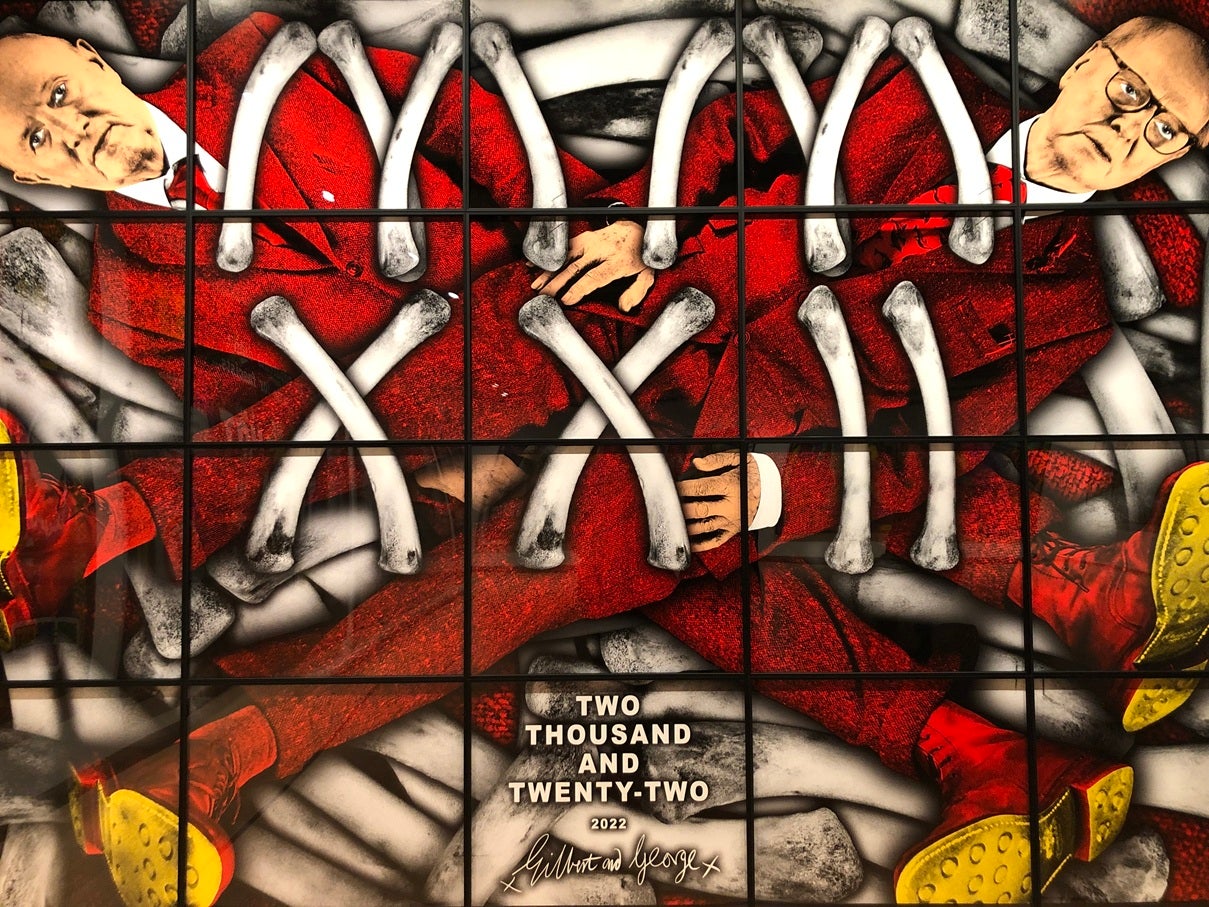 自分たちの全裸写真を使うなど、時に過激なビジュアルと強いメッセージ性でも知られるギルバート&ジョージは、そのアートを「Death(死)」「Hope(希望)」「Life(生)」「Fear(恐れ)」「Sex(セックス)」「Money(金)」「Race(人種)」「Religion(宗教)」「Shitty(クソみたいな)」「Naked(むき出しの)」「Human(人間)」「World(世界)」だと語る。
