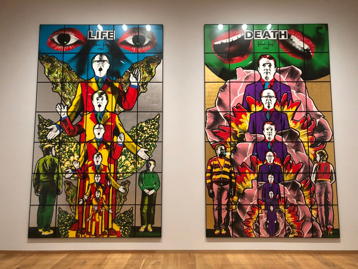60年に渡り、コンテンポラリー・アートの先駆者であり続ける、英国の2人組アーティスト「ギルバート&ジョージ」。彼らの過去25年間の作品のうち、約70点が展示されている。