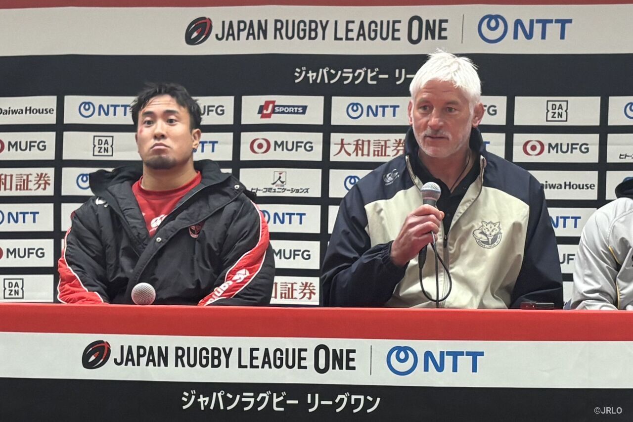 「埼玉パナソニックワイルドナイツ(以下、埼玉WK)さんに『おめでとう』とお伝えしたいです。彼らは今日のゲームで要所を押さえていて、ゲームの流れ、勢いを握られてしまいました。自分たちがボールを持っていてもプレッシャーを感じて、無理なプレーを選択してミスが起きてしまい、厳しい試合になりました。埼玉WKさんはフィジカルも良く調整していると感じましたし、単発の強さではなく80分間、良い強度のプレーをされたことで今日はやられてしまったと感じています。