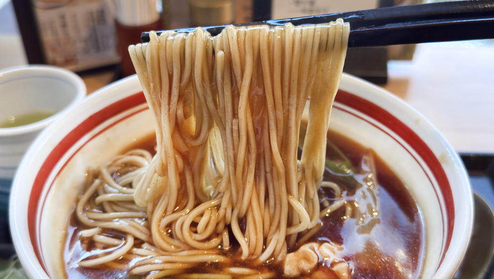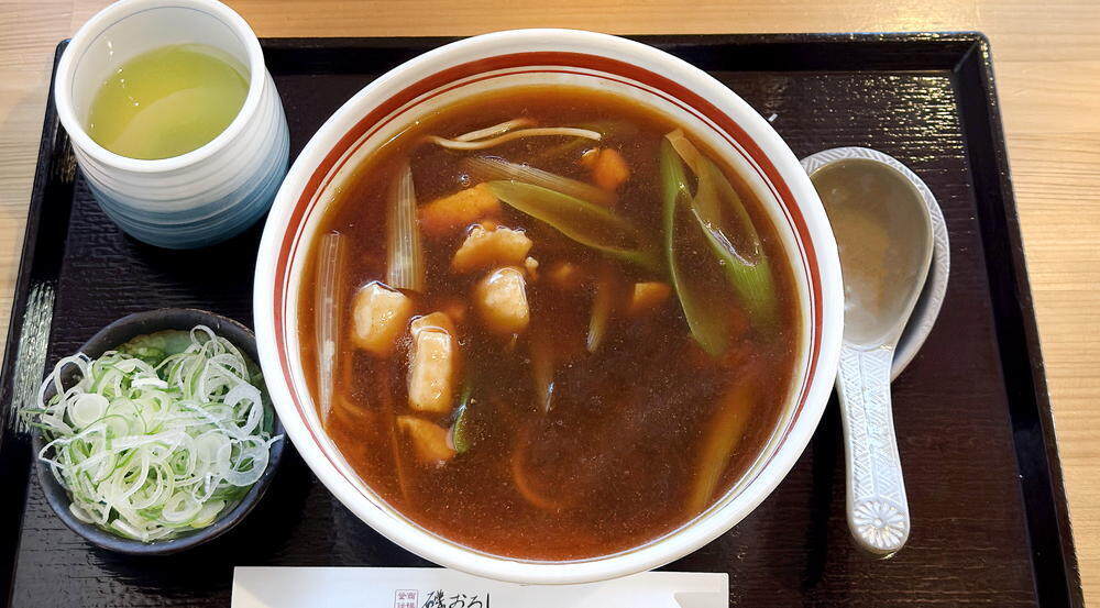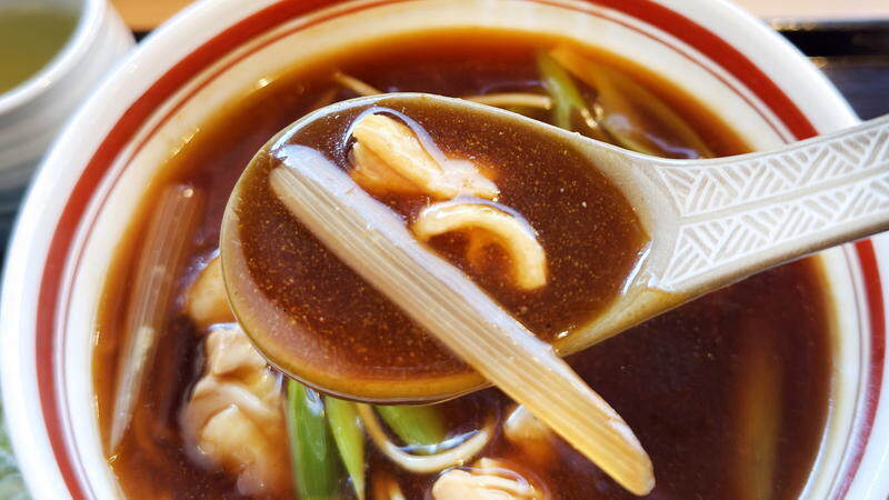見た目からはカレー感があまりないというか、スープ自体がカレー味な仕上がりで、おつゆ+カレー餡な定番スタイルとは異なるビジュアルですね。