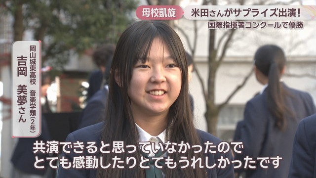 指揮者の国際コンクールで優勝 米田覚士さんが母校・岡山城東高校のコンサートにサプライズ出演
