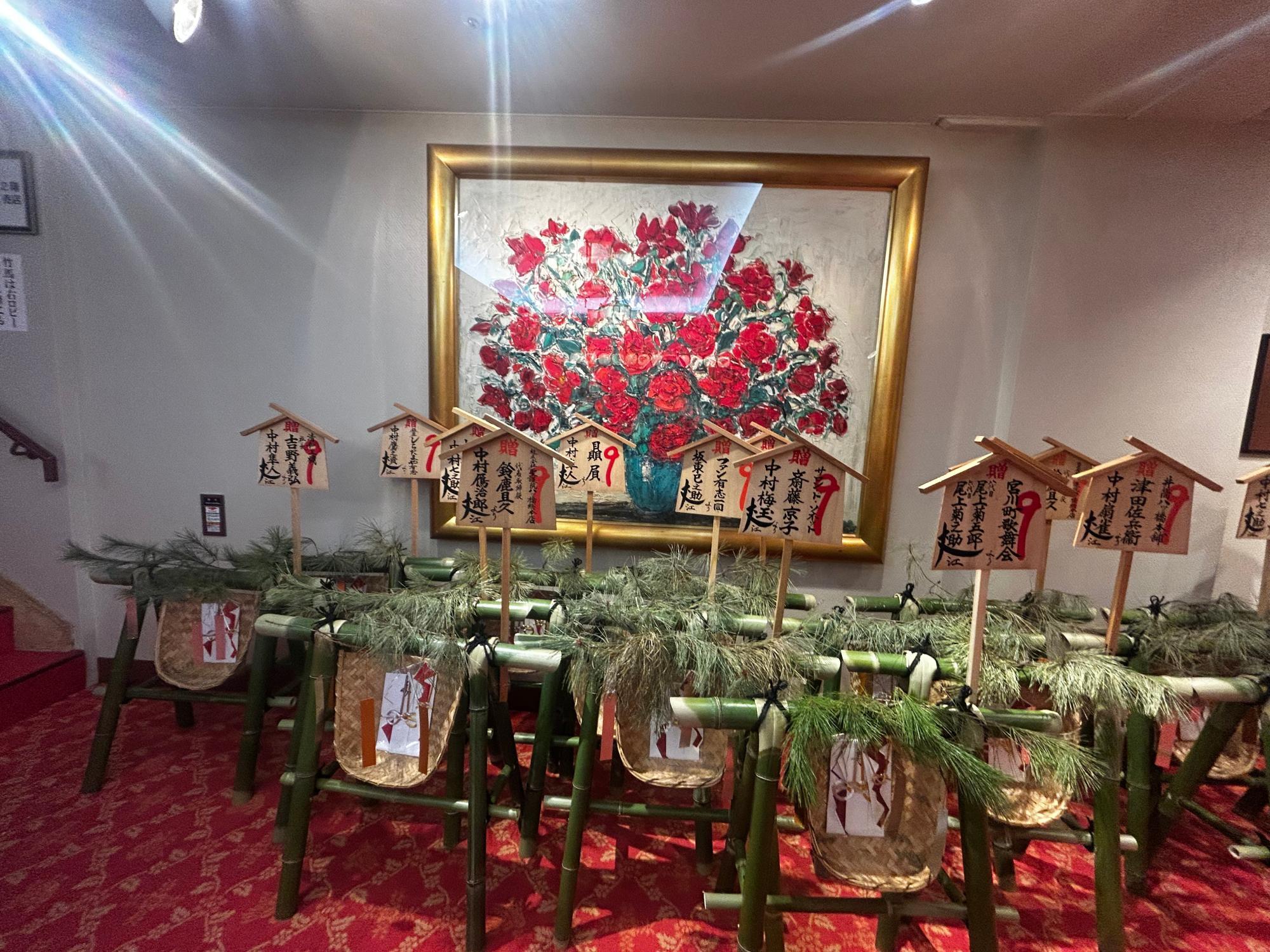 劇場内もお祝いの祝儀でいっぱいです。