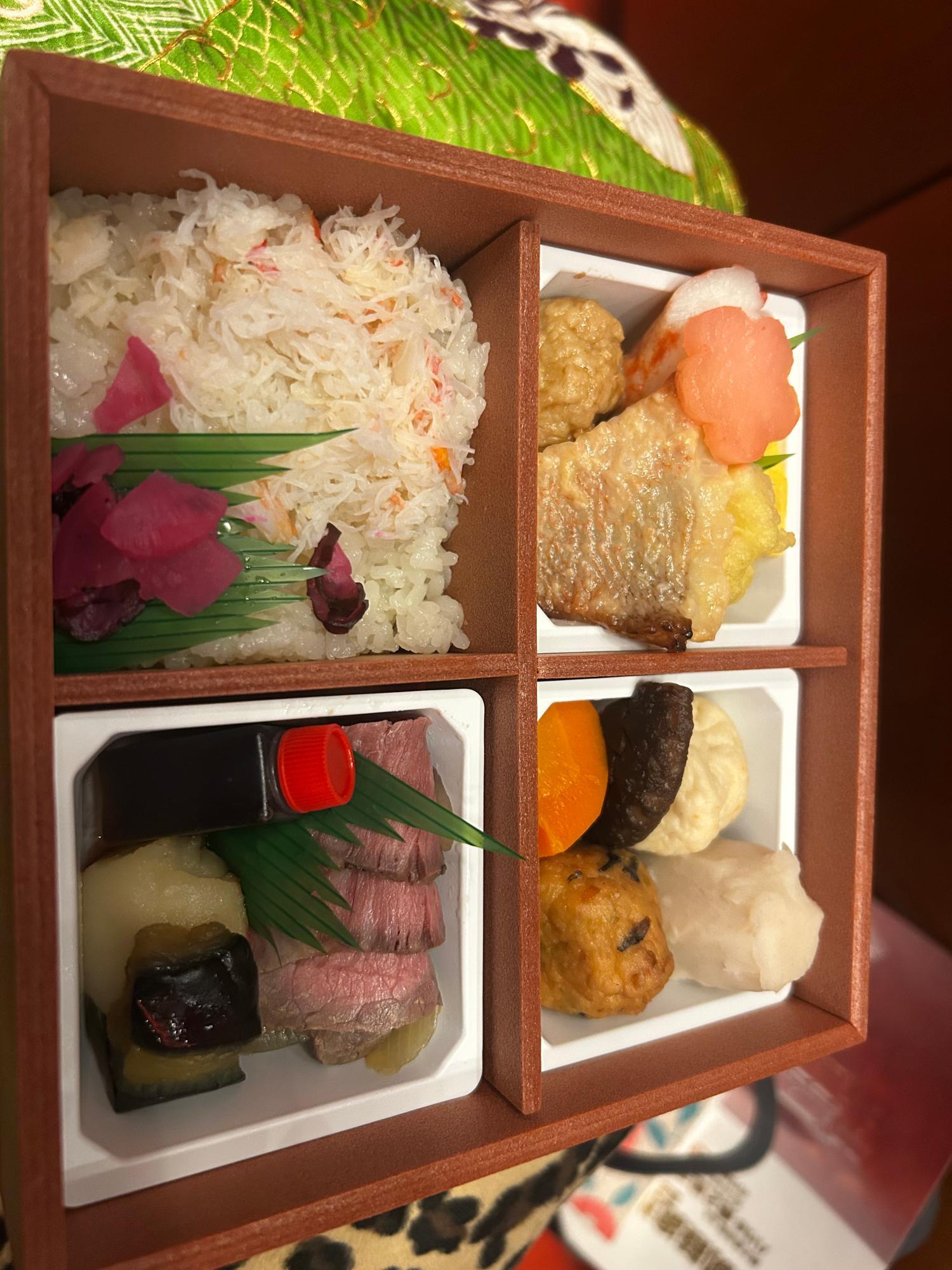 今回は、蟹とローストビーフのお弁当をいただきました。あっという間に食べ終わってしまいました!