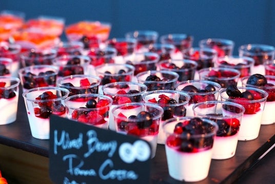 テラスには照明演出にて、空に向かい5本のサーチライトを照らし、また、デザートBARを設置して広島の夜景と共にスイーツをお楽しみいただきました。