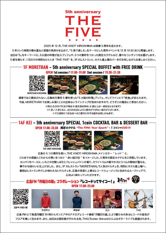 いちごは、2020年12月10日にグランドオープンしたライフスタイルホテル「THE KNOT HIROSHIMA」において、5周年となる記念イベント「THE FIVE」を12月10日(水)に開催いたしました。