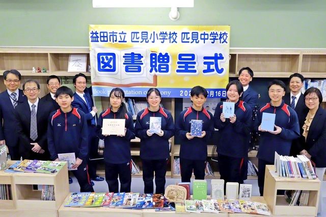島根・益(ます)田(だ)市で図書贈(ぞう)呈(てい)