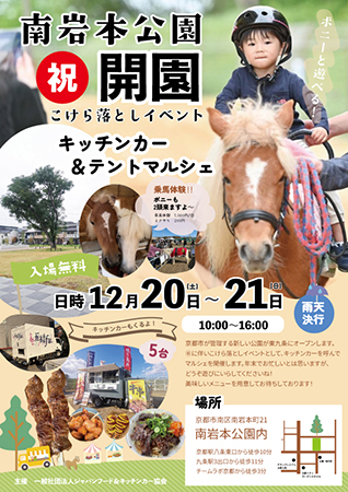 新エリア「KYOTO SOUTH PARK – みらいのひろば –」の開設を記念して、12月20日(土)・21日(日)には、キッチンカーやポニーとの触れ合い、アート展示が楽しめるオープニングイベントを開催する。