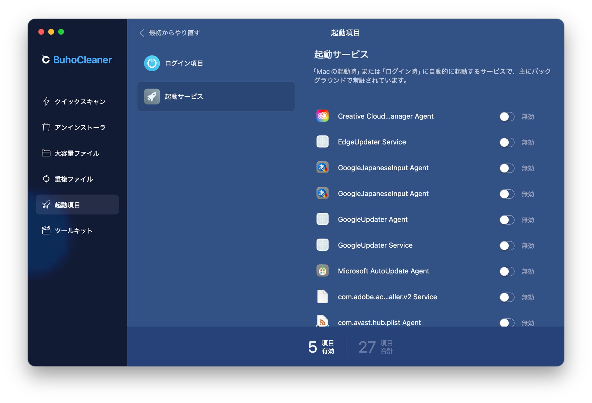 BuhoCleanerでは起動項目を手軽に管理でき、Macの起動時間を最大1.8倍高速化できます。いつでも最高のパフォーマンスを維持します。