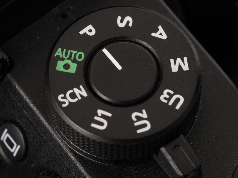 問題の撮影モードダイヤルです。動きが軽いですね。先日もいつのまにか緑の「AUTO」モードになっていたことに気づかず、撮影設定したくてもできない状態になり、パニックに。