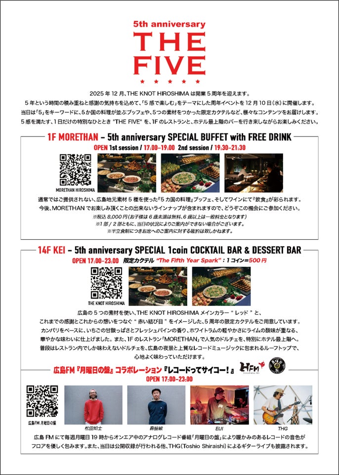 いちごは、2020年12月10日にグランドオープンしたライフスタイルホテル「THE KNOT HIROSHIMA」において、5周年となる記念イベント「THE FIVE」を12月10日(水)に開催いたしました。