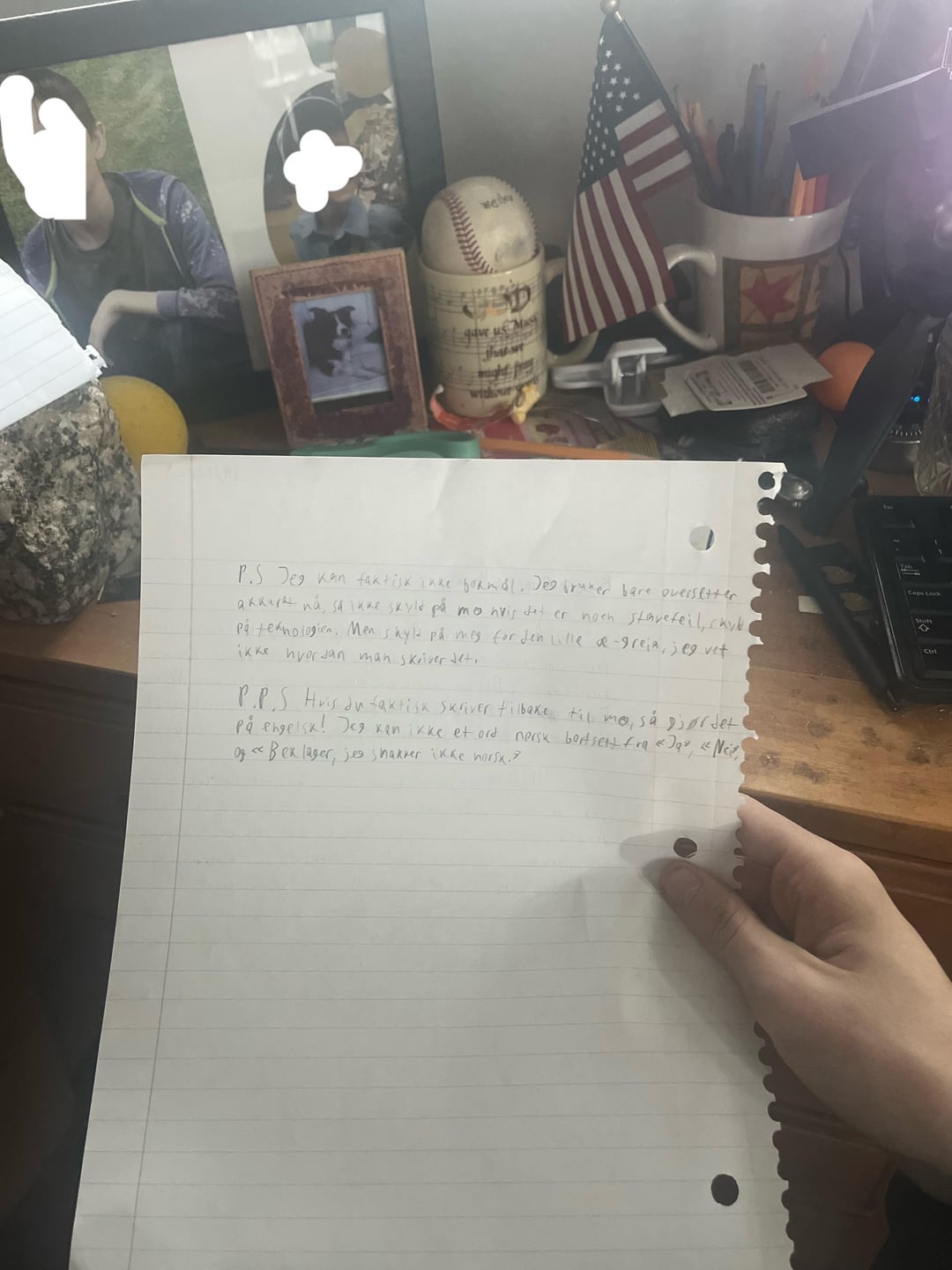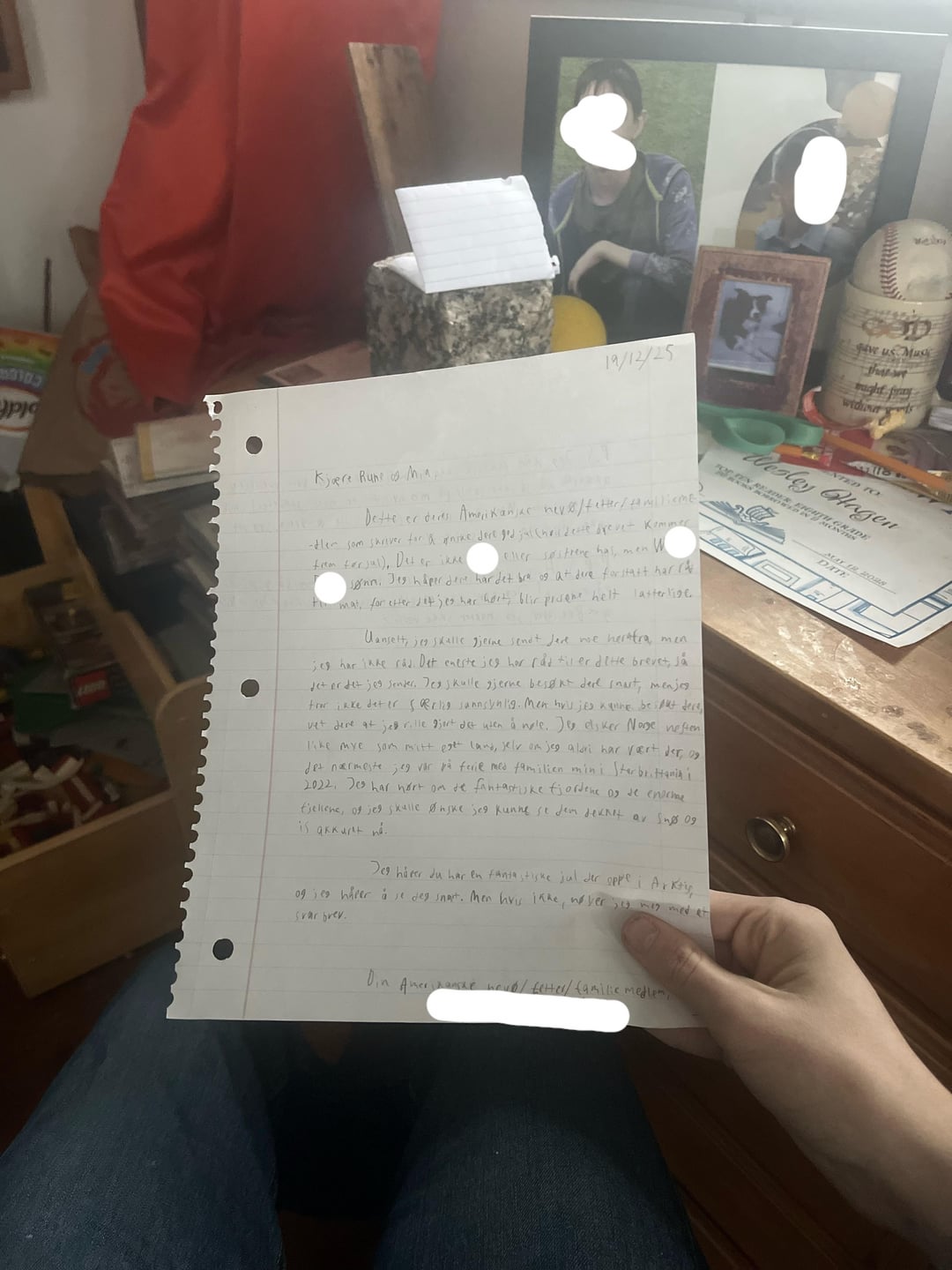 Twitter Pinterest Facebook Tumblr LinkedIn Bluesky Reddit Threads (名前と顔はぼかしてあります) やあ!私はアメリカ人で、クリスマスにトロムソにいるいとこたちに手紙を送りたいのですが、ノルウェー語で手紙を書きたいと思っていました。私はノルウェー語がわからないので翻訳機を使いました。私の手書きの文字が誰にでも読めるかどうかを知りたかっただけです。ありがとう! Norway