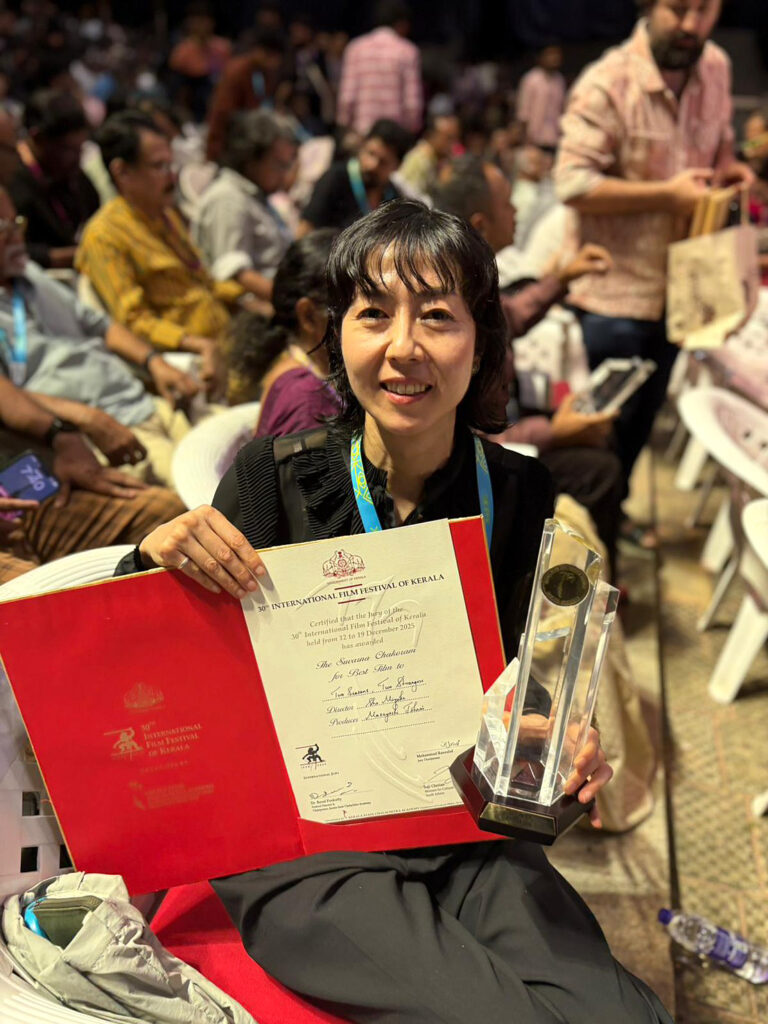 インド・ケララ州にて12月12日(金)より開催されていた第30回ケララ国際映画祭(International Film Festival of Kerala)の授賞式が12月19日(金)18:00(現地時間/日本時間同日21:30)より行われ、世界各国から14作品が選出されたコンペティション部門において、『旅と日々』が最高賞であるグランプリの栄冠に輝いた。現地では映画祭に参加した本作編集の大川景子がトロフィーを受け取り、笑顔で報道陣に応えた。