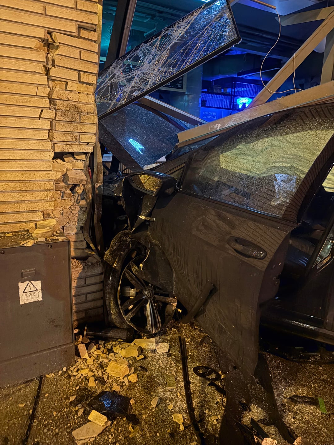その車はある程度のスピードでここに突っ込みました。ホーリーファック