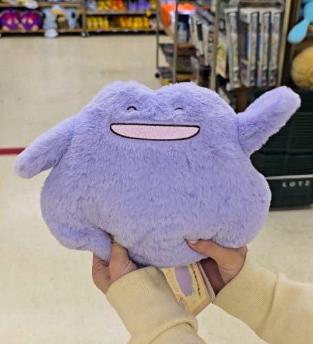 おどるぬいぐるみ「ようきなメタモンのぬいぐるみ」は、左右の下の部分を押すと、腕が上がったり下がったりして動く、楽しい仕掛け付きのぬいぐるみです。