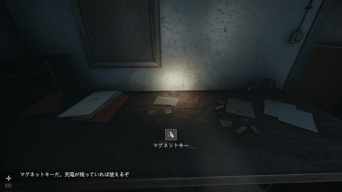 いろいろ物色していると「マグネットキー」を発見しました。開かずの部屋の鍵と照合し無事にアンロック。