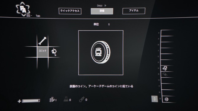 バッテリーを探すため一階へ。イグナットは「IIS」というガジェットを装備していて、そこからインベントリやアイテムの確認などが可能です。クイックアクセスは十字キーに割り当てられ、レンチやドローンといったさまざまな便利ツールを即座に呼び出せます。