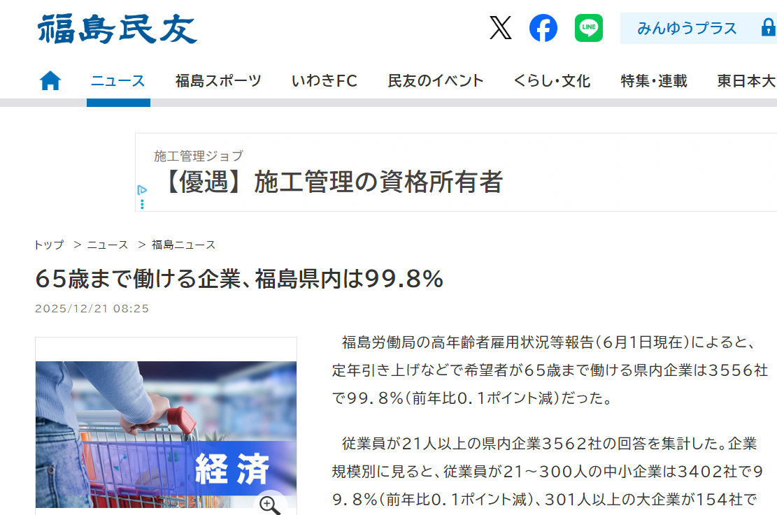 福島県内でも少子高齢化が進む中、高年齢者の活躍の場を広げることは、企業にとっても地域社会にとっても重要な課題です。今後は、70歳まで働ける環境の整備がさらなる課題となるでしょう。