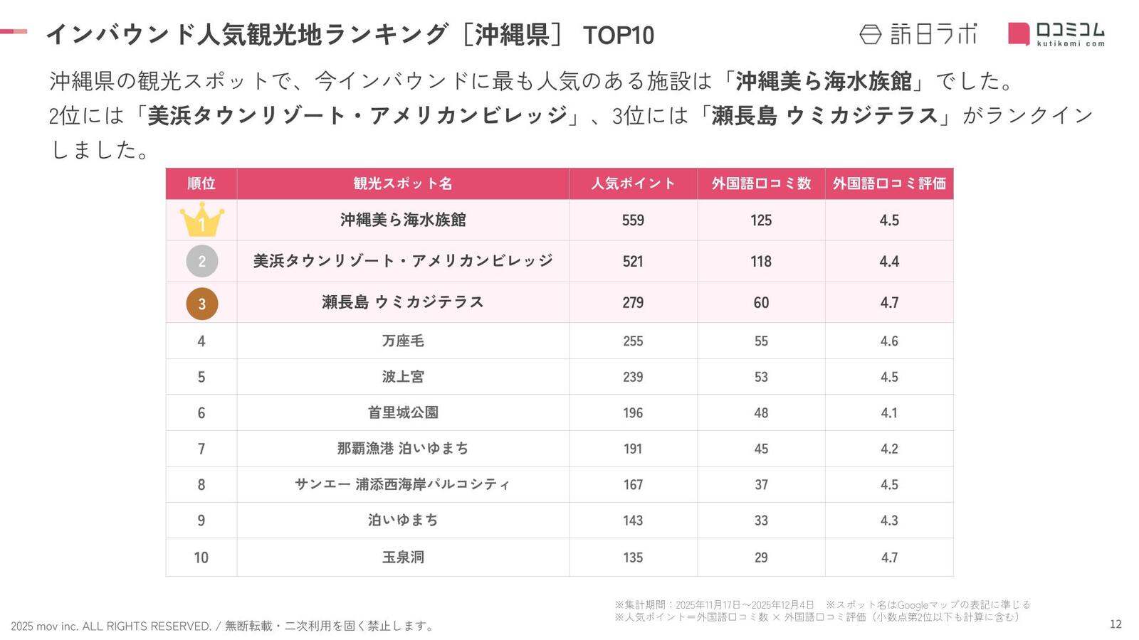 訪日ラボ・口コミコムが独自に調査した『インバウンド人気観光地ランキング』沖縄県 編。