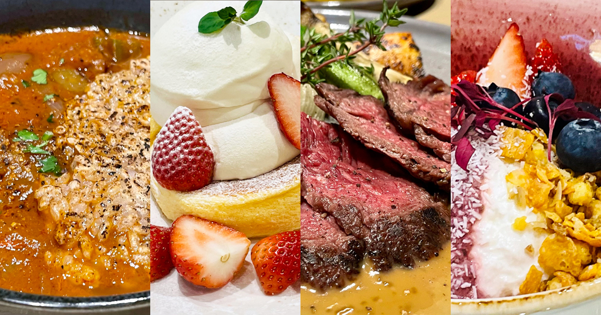 “奇跡のパンケーキ”で知られる「フリッパーズ」の店舗では、ここでしか味わえないメニューを豊富にそろえた。約20分かけて焼き上げるスフレパンケーキは定番の“スフレパンケーキ ストロベリー”などのほか、店舗限定メニューとして祇園辻利の宇治抹茶を使用した“奇跡のスフレパンケーキ 抹茶”なども提供する。